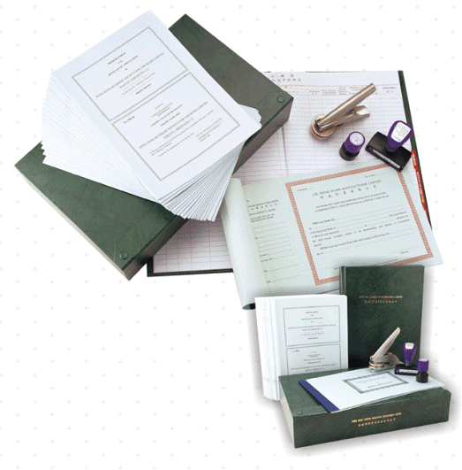3.一套印刷品章程(股票本、股東記事冊、申請文件);